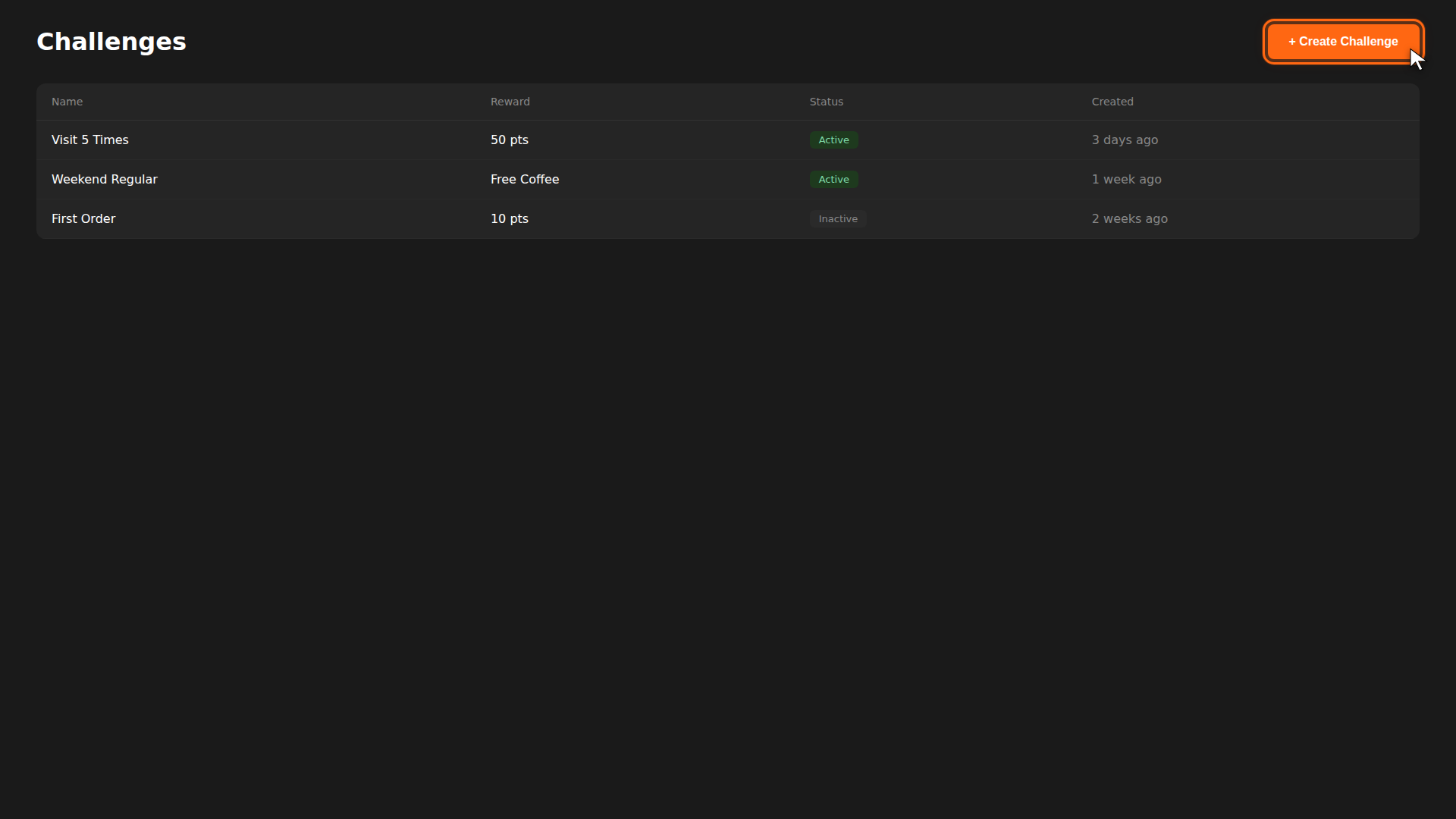 A challenge motivates customers to take repeated actions — like visiting 5 times or ordering on weekends — in exchange for a reward. Here's how to create one.