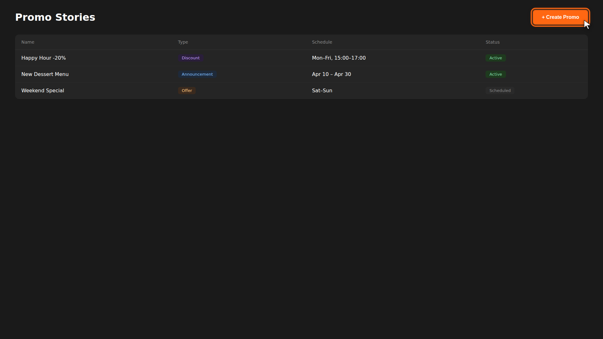 Promo stories let you showcase deals, new menu items, or time-limited offers directly in your customers' app feed. Here's how to create one.