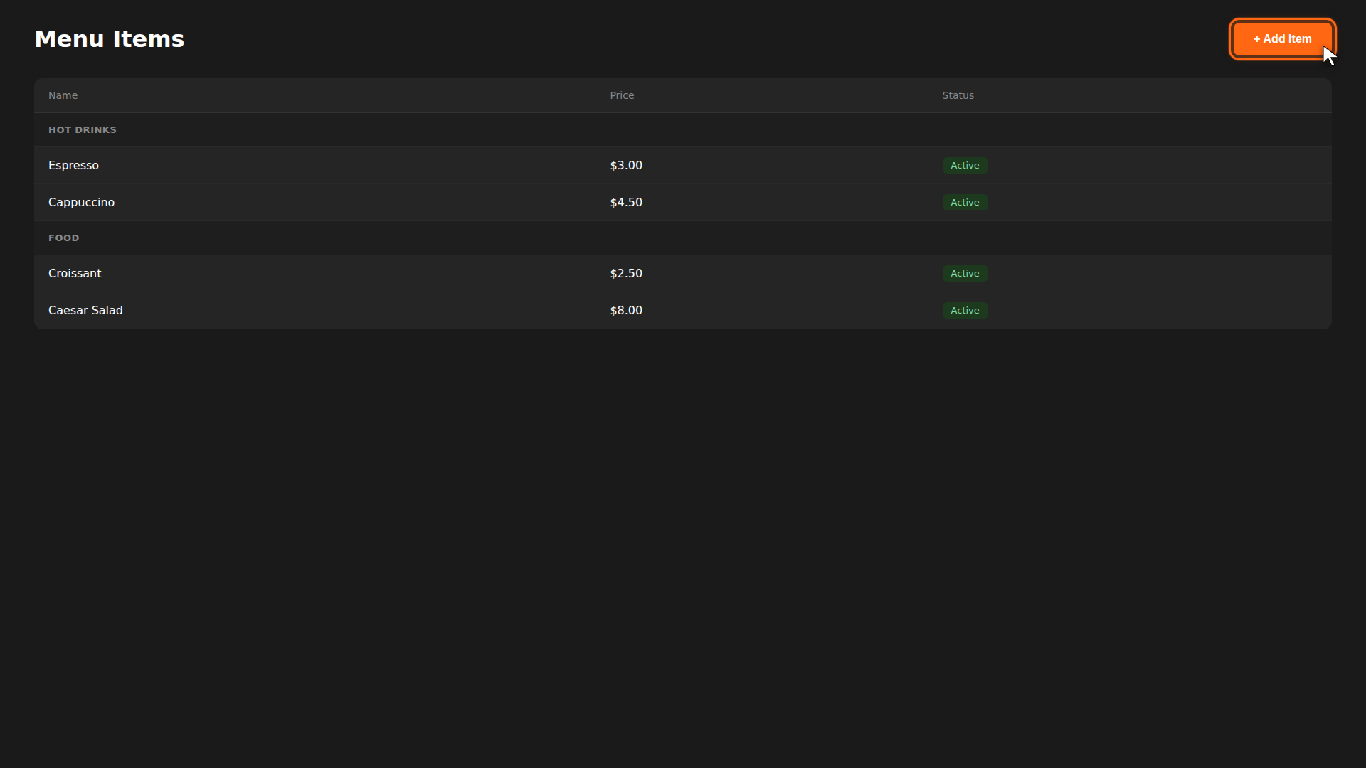 Menu items are what your customers see and order. Each item has a name, price, and category. Here's how to add one.